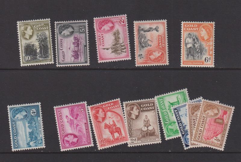 3613 M imageGold Coast 1952-4 QEII Picts set incl both ½d shades. SG 153 etc. Cat £70+. Mint. (Image)