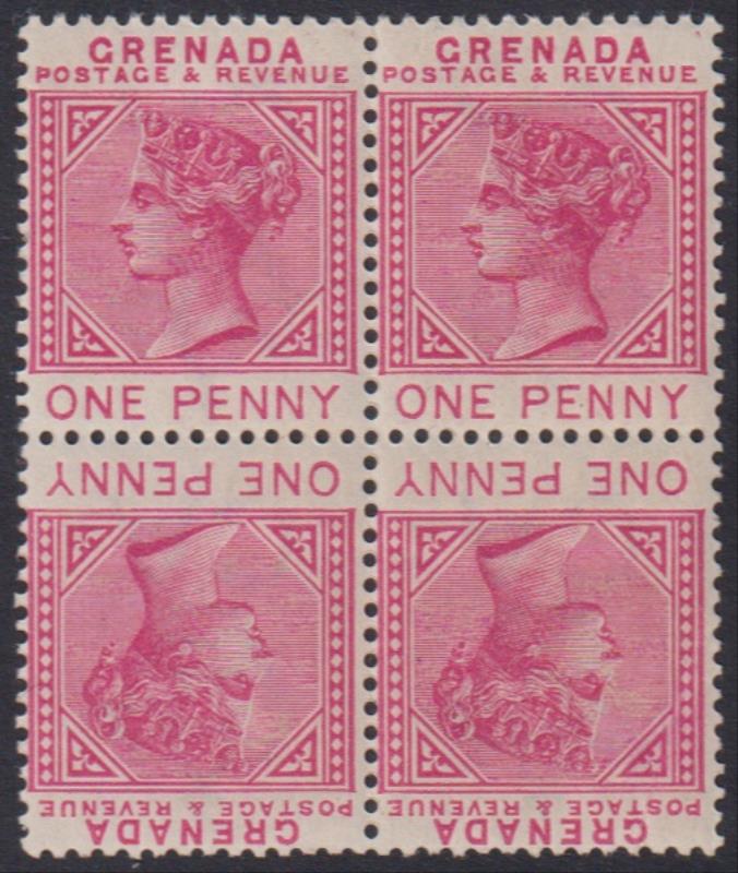 3615 * imageGrenada 1887 1d QV carmine tête-bêche block of 4. SG 40. Cat £24 as mint. MUH. (Image)