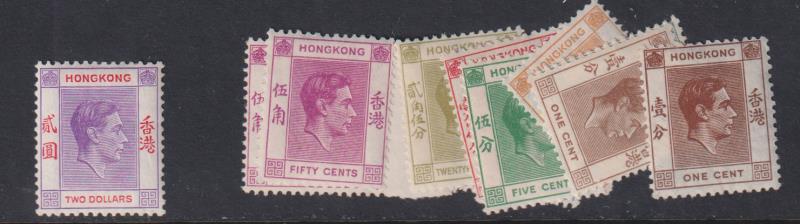 3632 M imageHong Kong 1938-46 1c-$2 GVI defins range of 11v, incl $2 chalky paper. SG 158a etc. Cat £100+. Mint. (Image)