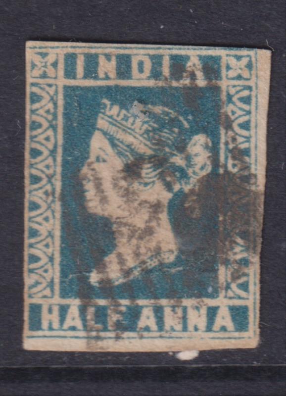 India 1855 ½a QV blue, die III, imperf 3 margins. SG 8a. Cat £100. GU. (Image)
