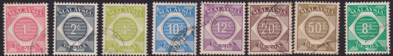 3722 U imageMalaysia 1966 Postage Due set (8v). SG cat £48. FU. (Image)