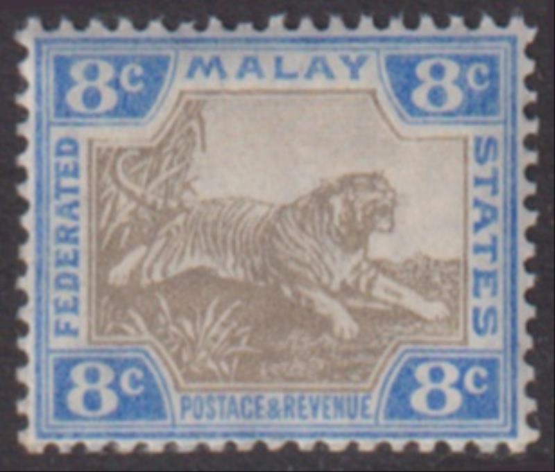 3730 * imageMalaya-Federated Malay States 1900 8c Tiger grey-brown & ultramarine. SG 19b. Cat £30 as mint. MUH. (Image)