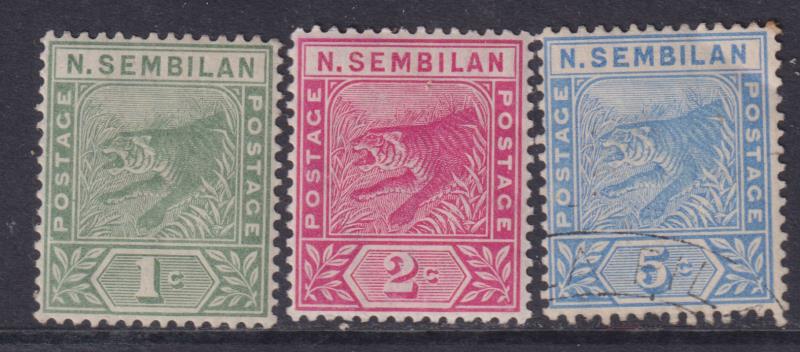 3740 / imageMalaya-Negri Sembilan 1891-4 1c, 2c mint & 5c FU. SG cat £58. (Image)