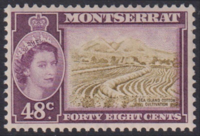 3783 * imageMontserrat 1957 48c QEII, yellow-olive & purple (cotton cultivation). SG 145a. Cat £20. MUH. (Image)