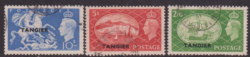 3809 U imageMorocco Agencies-Tangier 1951 2/6d, 5/-, 10/- "TANGIER" ovpt on GB GVI Picts. SG 286-8. Cat £43. FU. (Image)