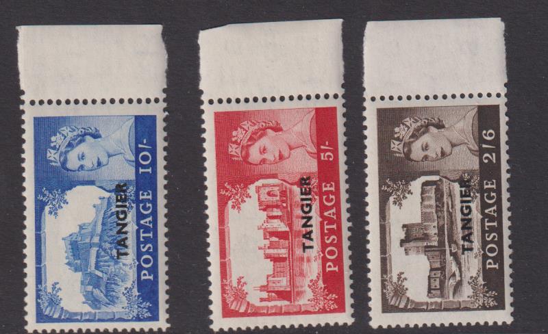 3810 * imageMorocco Agencies-Tangier 1955 2/6d, 5/- & 10/- Castles. SG 310-2. Cat £27. MUH. (Image)