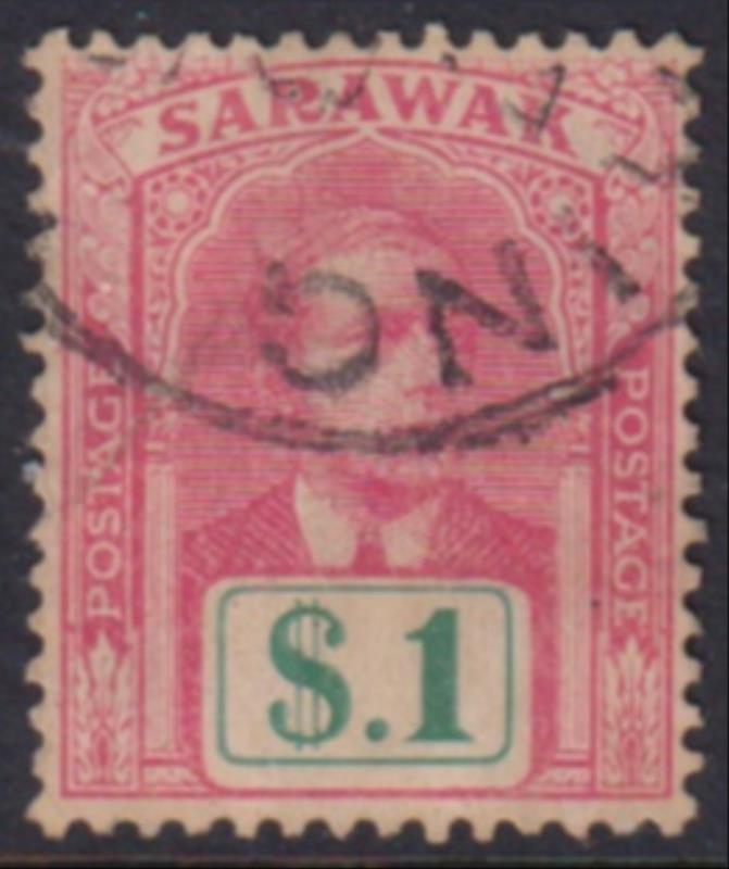Sarawak 1918 $1 Sir Charles Vyner Brooke bright rose & green, no wmk, small crease at left side. Top value. SG 61. Cat £30.