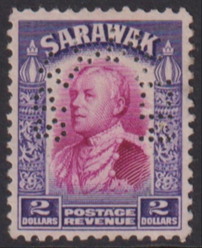 Sarawak 1934 $2 SPECIMEN puncture. SG 121s. (Image)