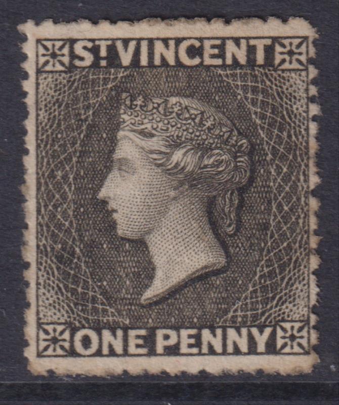 St Vincent 1872 1d QV black, p15, sideways star wmk. SG 18. Cat £60. MNG. (Image)