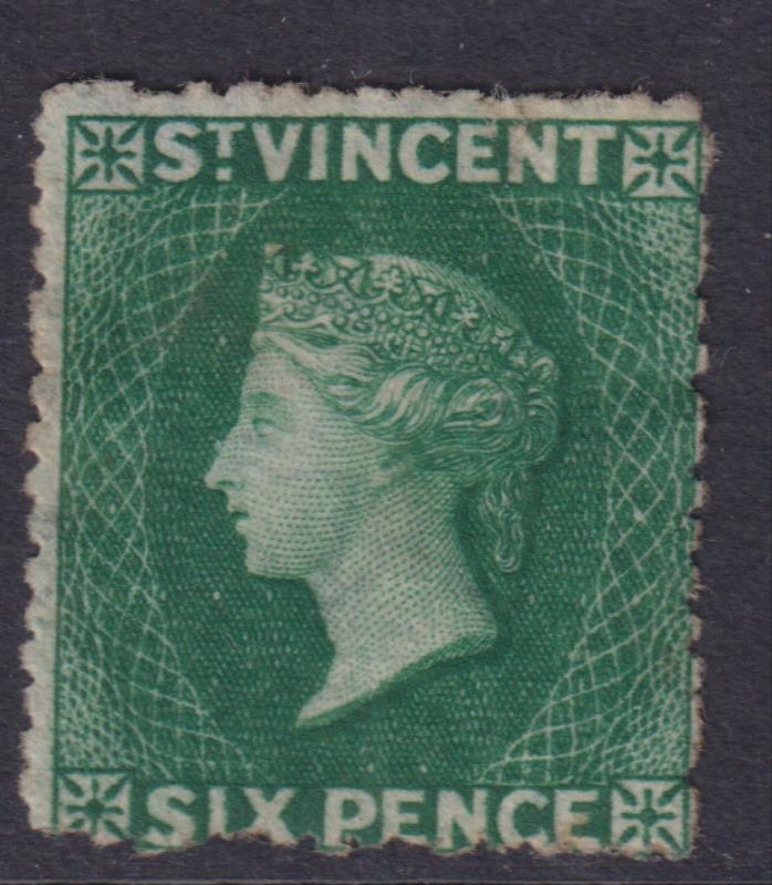 St Vincent 1875 6d QV deep blue-green, p15, sideways star wmk. SG 19b. Cat £1500. MNG. (Image)