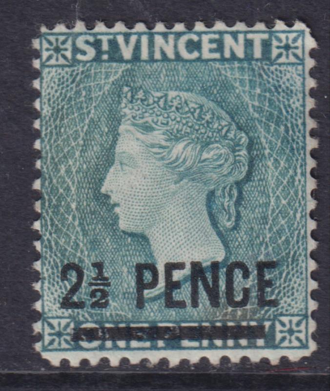 St Vincent 1889 2½d on 1d QV milky blue. SG 49. HH mint. (Image)