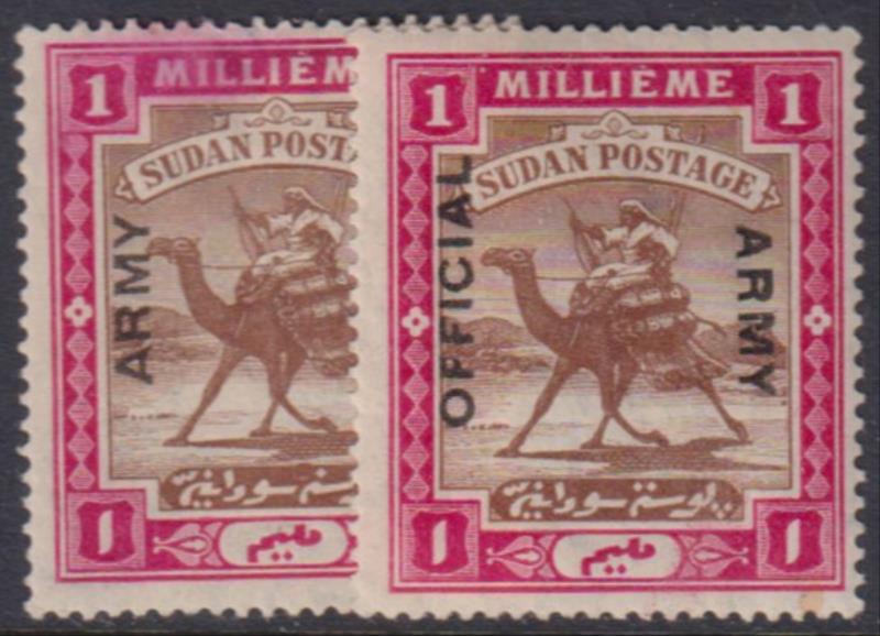 Sudan 1905 1m Camel Postman, ARMY OFFICIAL reading down, star & crescent wmk. Also similar but reading up (small thin). SG