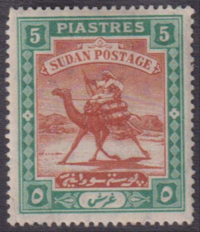 Sudan 1908 5p Camel Postman, ordinary paper. SG 27. Cat £42. Mint. (Image)