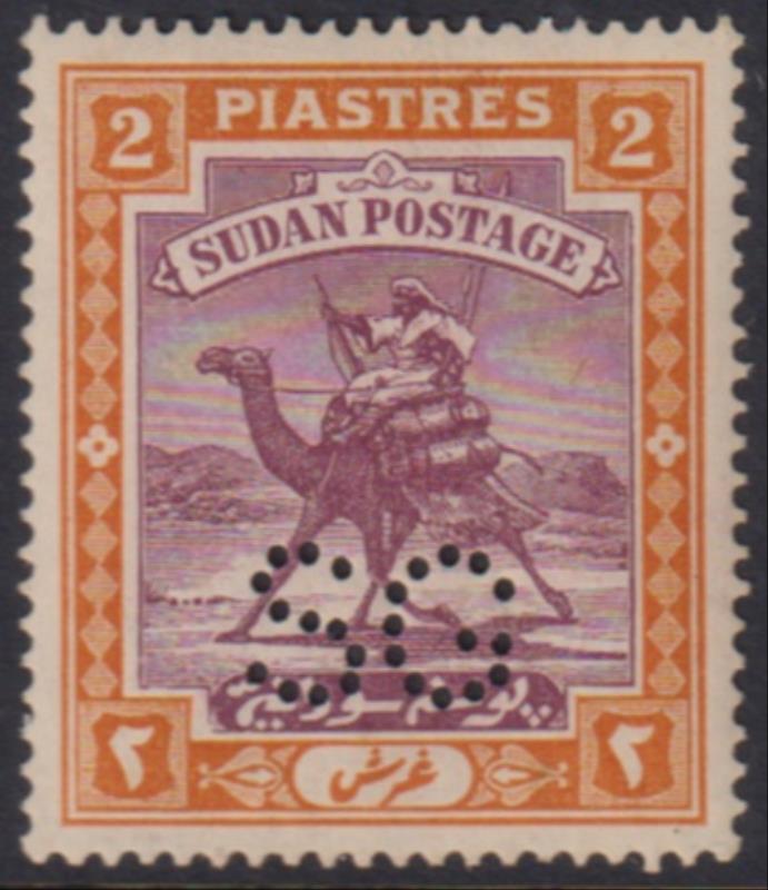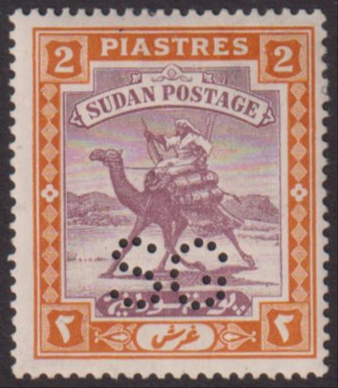 Sudan 1927 2p Camel Postman, "SG" puncture, wmk SG. SG O29. Cat £42. Mint. (Image)