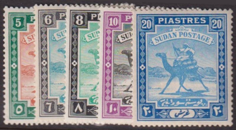 Sudan 1921-3 1m-15m Camel Postman set & incl 2m yellow & chocolate (8v). SG cat £51. Mint. (Image)
