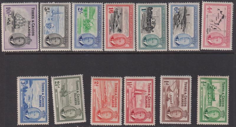 4010 M imageTurks & Caicos Isl 1950 GVI 2nd Pictorials set of 13. SG 221-33. Cat £85. Mint. (Image)