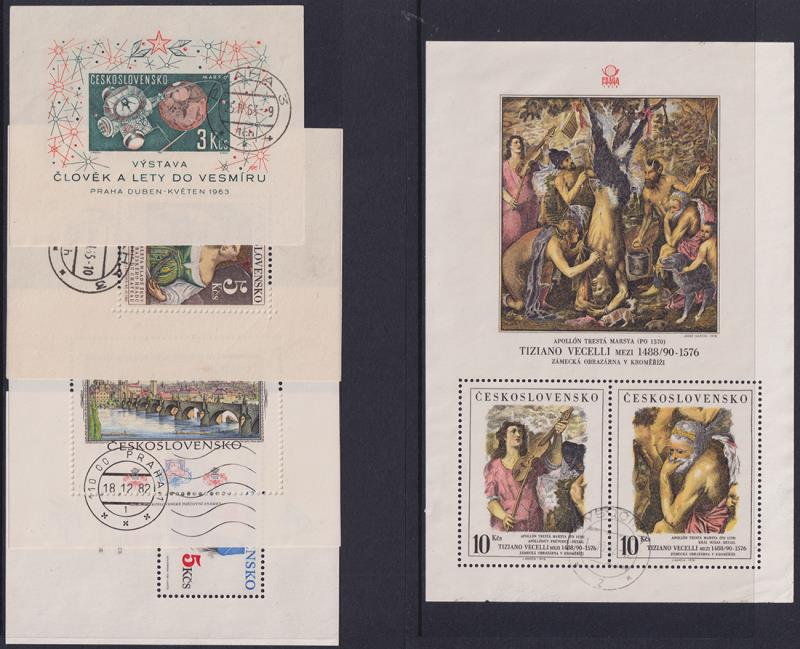 4135 U imageCzechoslovakia 1963-89 range of 5 m/s: 1963 3K Space Research, 1965 5K Culture (Titian painting), 1978 20K Stamp Exbn (11th & 12th issues) & 1989 5K French Revolution. Attractive. SG 1354a, 1511, 2424-5, 2979. Cat £56. FU. (Image)