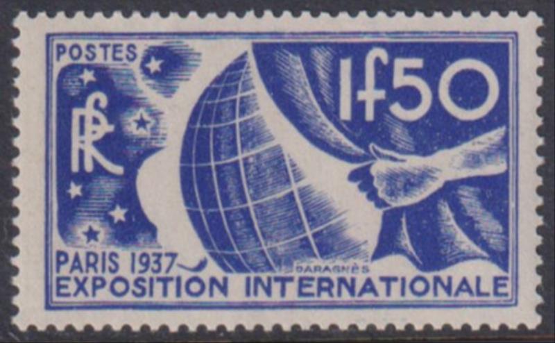 France 1936 1F50 Paris International Exhibition, light diagonal bend. SG 560. Cat £47. MUH. (Image)
