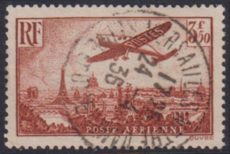 France 1936 3F50c Air red-brown (plane over Paris). SG 539. Cat £32. FU. (Image)
