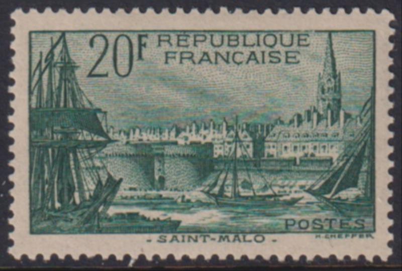 France 1938 20Fr St Malo green. SG 601. Cat £60. Mint. (Image)