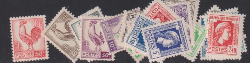 France 1944 Cock & Marianne defins set. SG 832-50. Cat £23+. MUH. (Image)