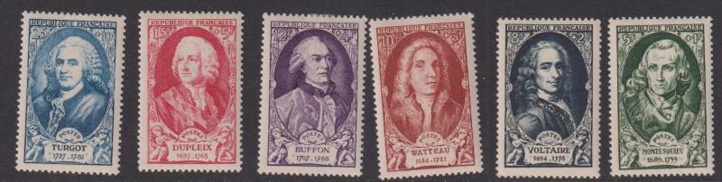 France 1952 National Relief Fund (19th Century Celebrities) set of 6. SG 1151-56. Cat £70. MUH.