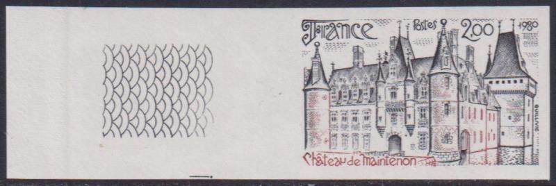 France 1980 2Fr Chateau de Maintenon imperf single with LH selvedge. Ceres 2098. MUH. (Image)