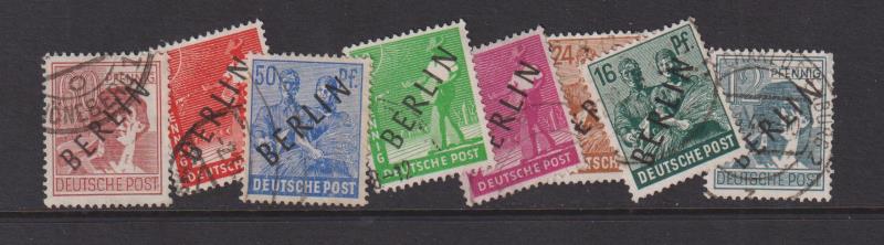 4353 U imageGermany-West Berlin 1948 BERLIN ovpts (black): 8pf, 10pf, 12pf, 16pf, 24pf, 40pf, 50pf & 60pf. SG cat £69+. All FU. (Image)