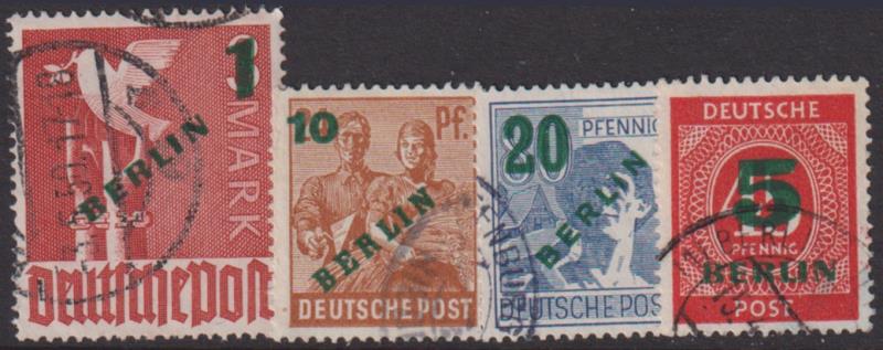 4354 U imageGermany-West Berlin 1949 BERLIN surcharges (4v). SG B64-67. Cat £47. FU. (Image)