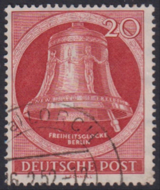 4359 U imageGermany-West Berlin 1951 20pf Freedom Bell, clapper at right. SG B84. Cat £26. FU. (Image)
