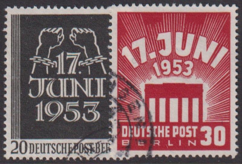 Germany-West Berlin 1953 East Germany Uprising set. SG B110-111. Cat £52. FU. (Image)