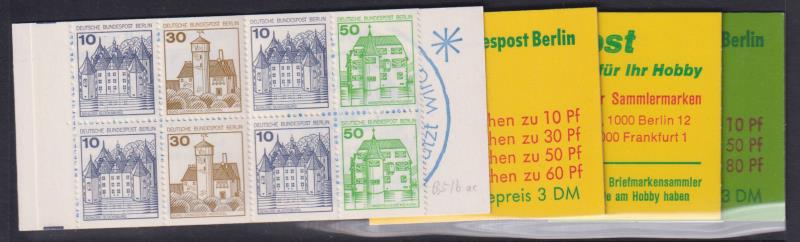 Germany-West Berlin 1977-82 2DM x 3 + 3DM stamp booklets (buildings). SG BSB10, 11, 12, 13. Cat £63. MUH. (Image)