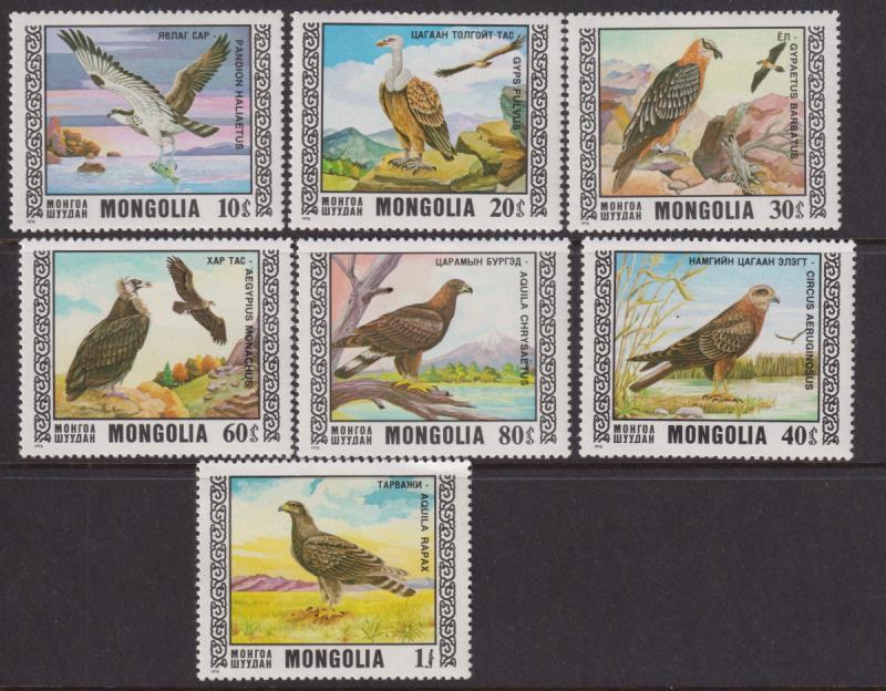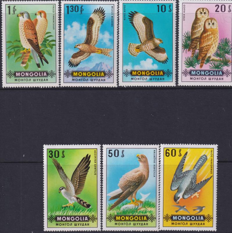 4544 * imageMongolia 1970 Birds of Prey set. SG 575-81. Cat £20+. MUH. (Image)