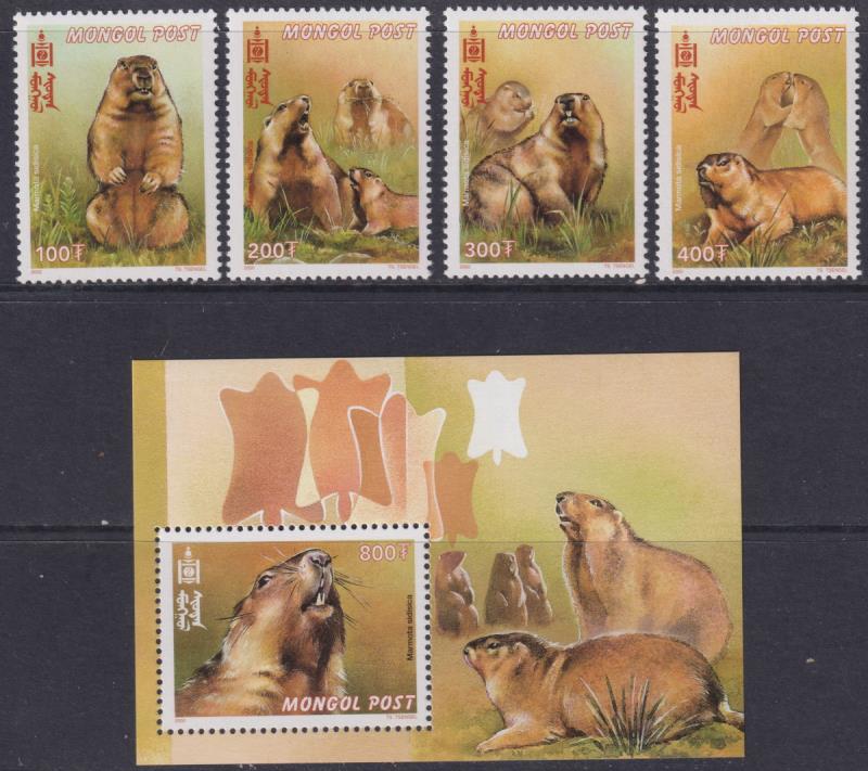 4550 * imageMongolia 2000 Marmot set & m/s. SG 2896-2900. Cat £21+. MUH. (Image)