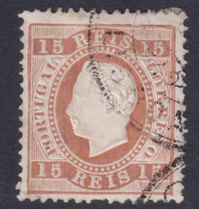 4587 U imagePortugal 1870 15r King Luis, straight value labels. SG 74. Cat £43. Fine used. (Image)