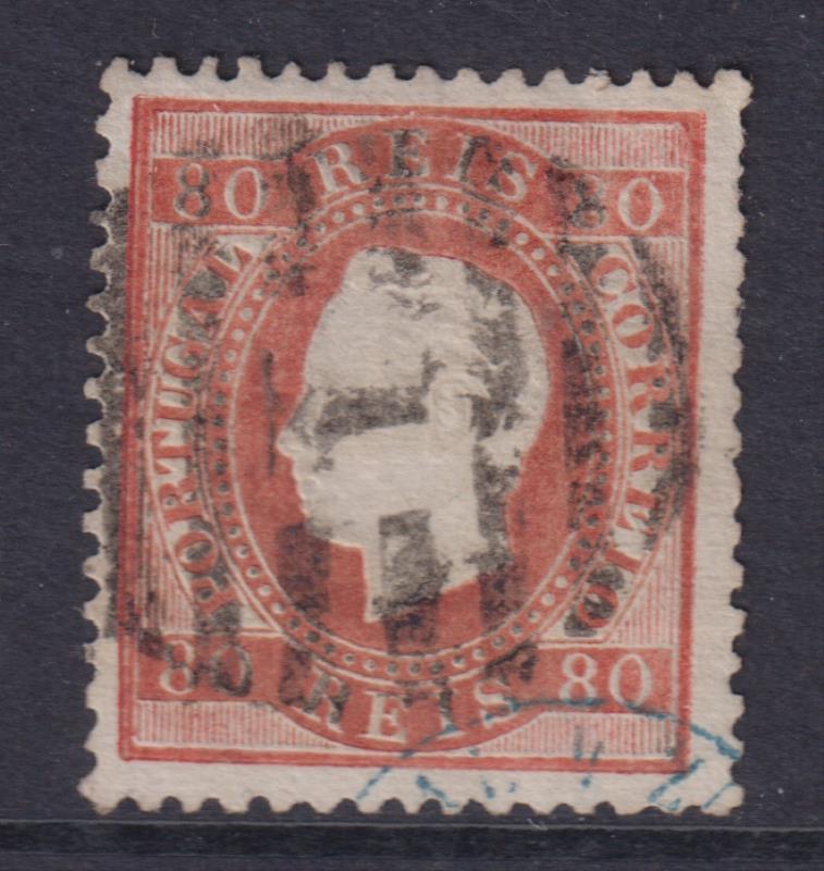 4590 FU imagePortugal 1870 80r King Luis, straight value labels. SG 148. Cat £28. Fine used. (Image)