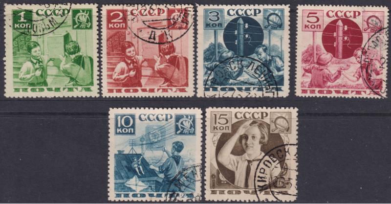 Russia 1936 Pioneer Movement set. SG 721-6. Cat £35. FU. (Image)