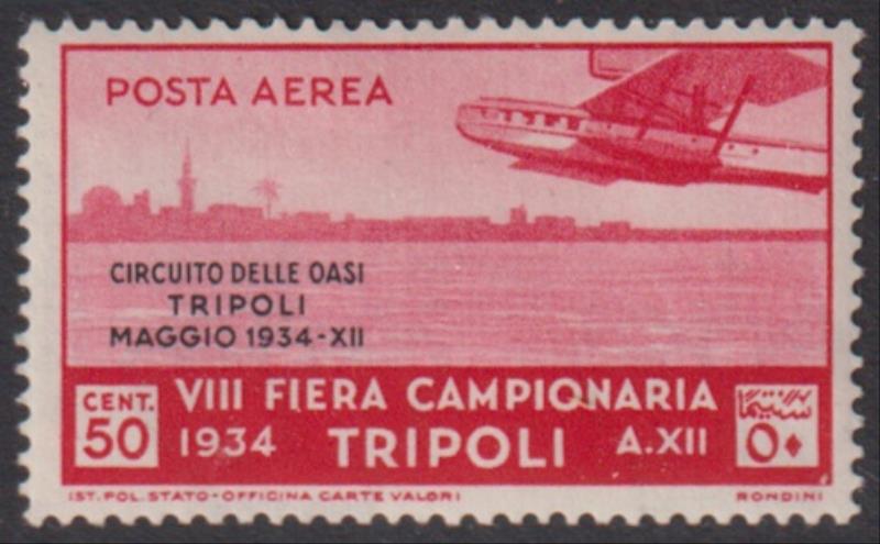 4762 M imageTripolitania 1934 50c Oasis Flight. SG 197. Cat £23. Mint. (Image)