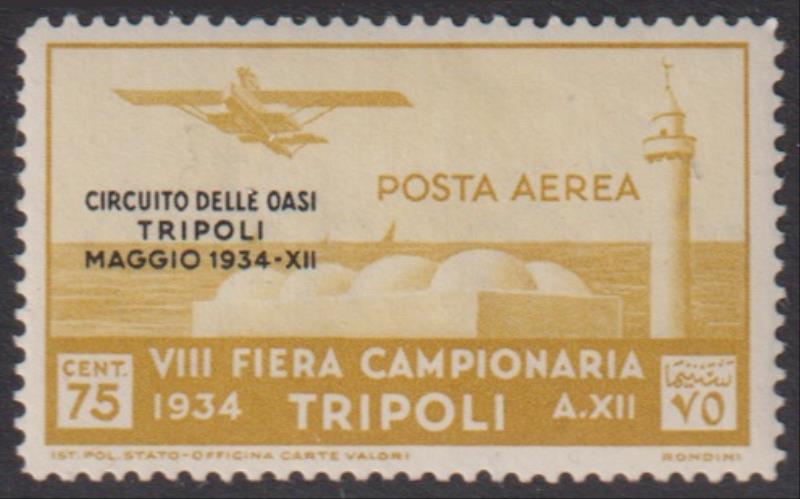 4763 M imageTripolitania 1934 75c Oasis Flight. SG 198. Cat £23. Mint. (Image)