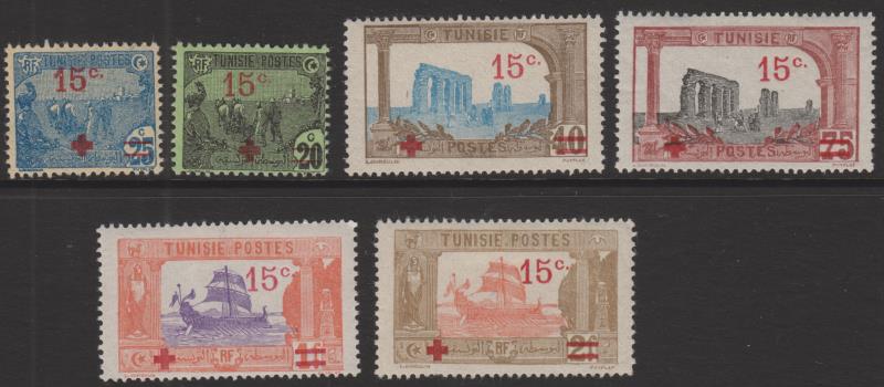 4765 M imageTunisia 1918 Prisoner of War Fund ovpts 15c on 20c, 25c, 40c, 75c, 1F & 2F. SG 61-2, 64-7. Cat £164. Mint. (Image)
