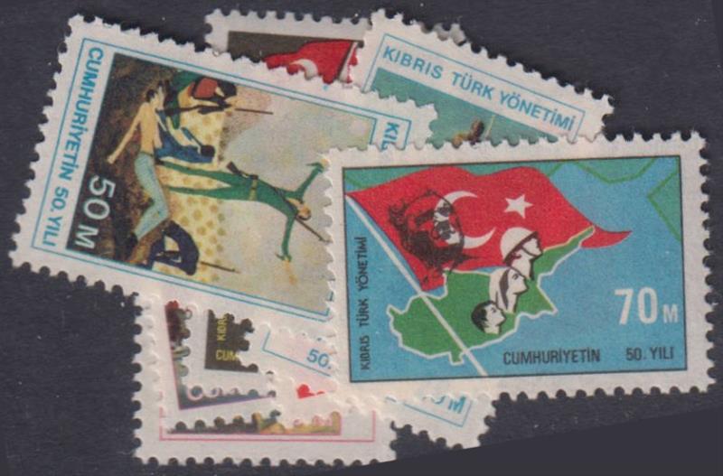 4766 * imageTurkish Cypriot Posts 1974 Republic of Turkey 50th Anniversary set of 7. SG 1-7. Cat £50. MUH. (Image)