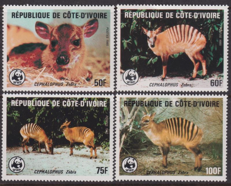 Wildlife: Ivory Coast 1985 Banded Duiker WWF set. SG 867-70. Cat £20+. MUH. (Image)