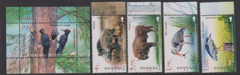 Wildlife: Moldova 2018 set + m/s. MUH. (Image)