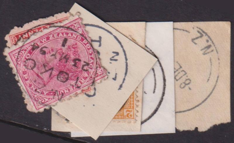 "WELLINGTON PARCELS" large 44mm rubber cds, 2 fine complete slightly overlapping strikes of 3 AUG 1931 on strip of 4 x 6d GV (with part Parcel-Post label) on piece. Also fine complete strike of same cds (date unclear) on GV 6d & 4d on piece (2).