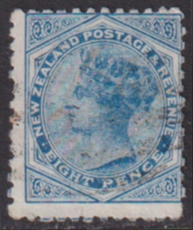 1888 8d SSF blue, 7mm wmk (vert mesh), p12 x 11½. Blenheim A-type cds 1 FE 9(0?). Tiny ink mark on back of 1 perf. CP D9b.