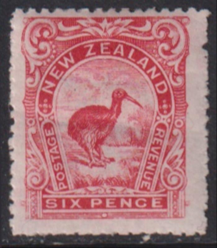 1907 6d Kiwi reduced, light horiz crease does not affect frontal appearance. Cat $120. Mint. (Image)