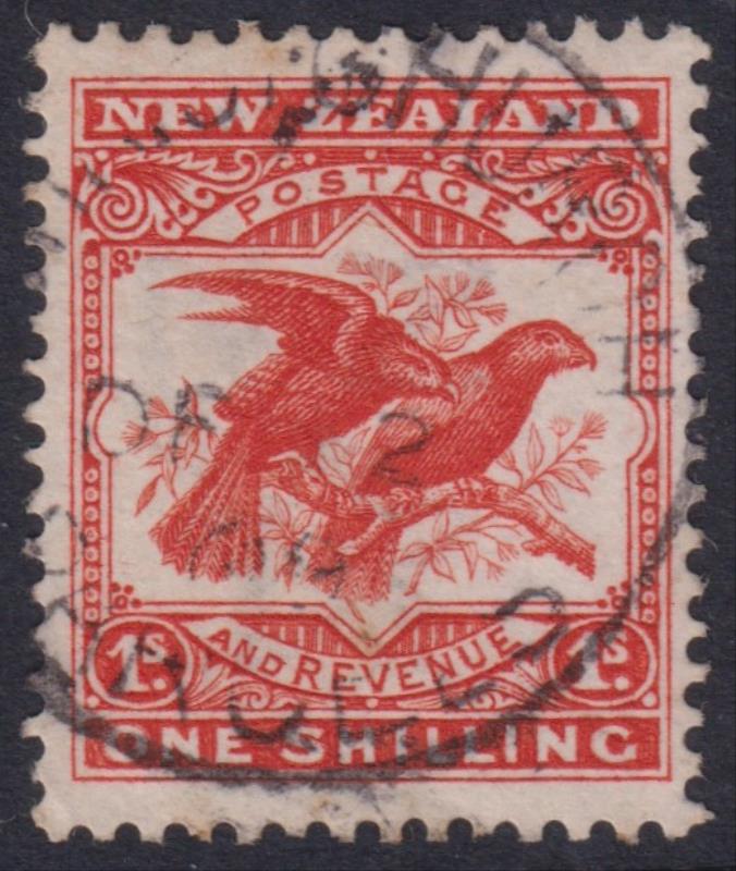 1908 1/- Kaka reduced, p14 x 15. CP E19b(1). Cat $75. VFU. (Image)
