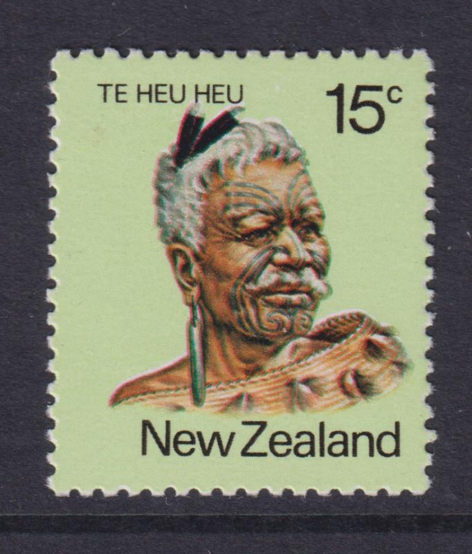 1980 15c Te Heu Heu (Maori Chief), with variety fine offset on gum of pale green background (head clearly outlined). MUH. (Image)