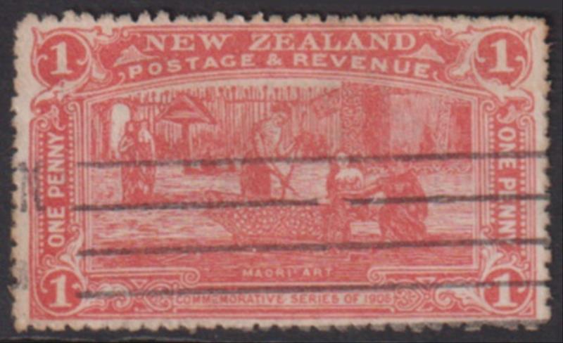 1906 1d Christchurch Exbn, canc Linwood A-type cds (?) MR 07 & light Christchurch machine d/s. Jury cat $45. FU. (Image)