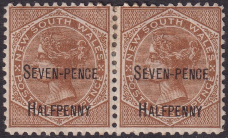 1999 M imageNSW 1891 7½d ovpt on a pair of 6d QV brown, both w/c, attractive pair. SG 267b. Cat £30. Mint. (Image)